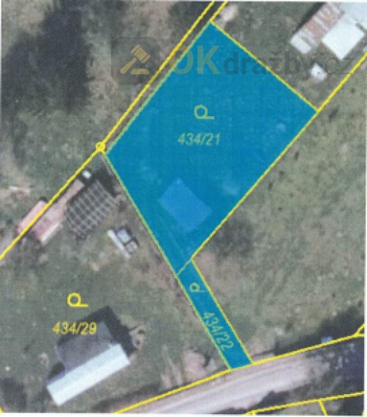 Jedná se o dražbu pozemků 434/21 a 434/22 (příjezdová cesta) obě plochy evidované jako zahrada. Na pozemku 434/21 je umístěná neevidovaná zahrádkářská chatka o zas. ploše 22m2. Příslušenství těchto nemovitostí tvoří: oplocení, brána