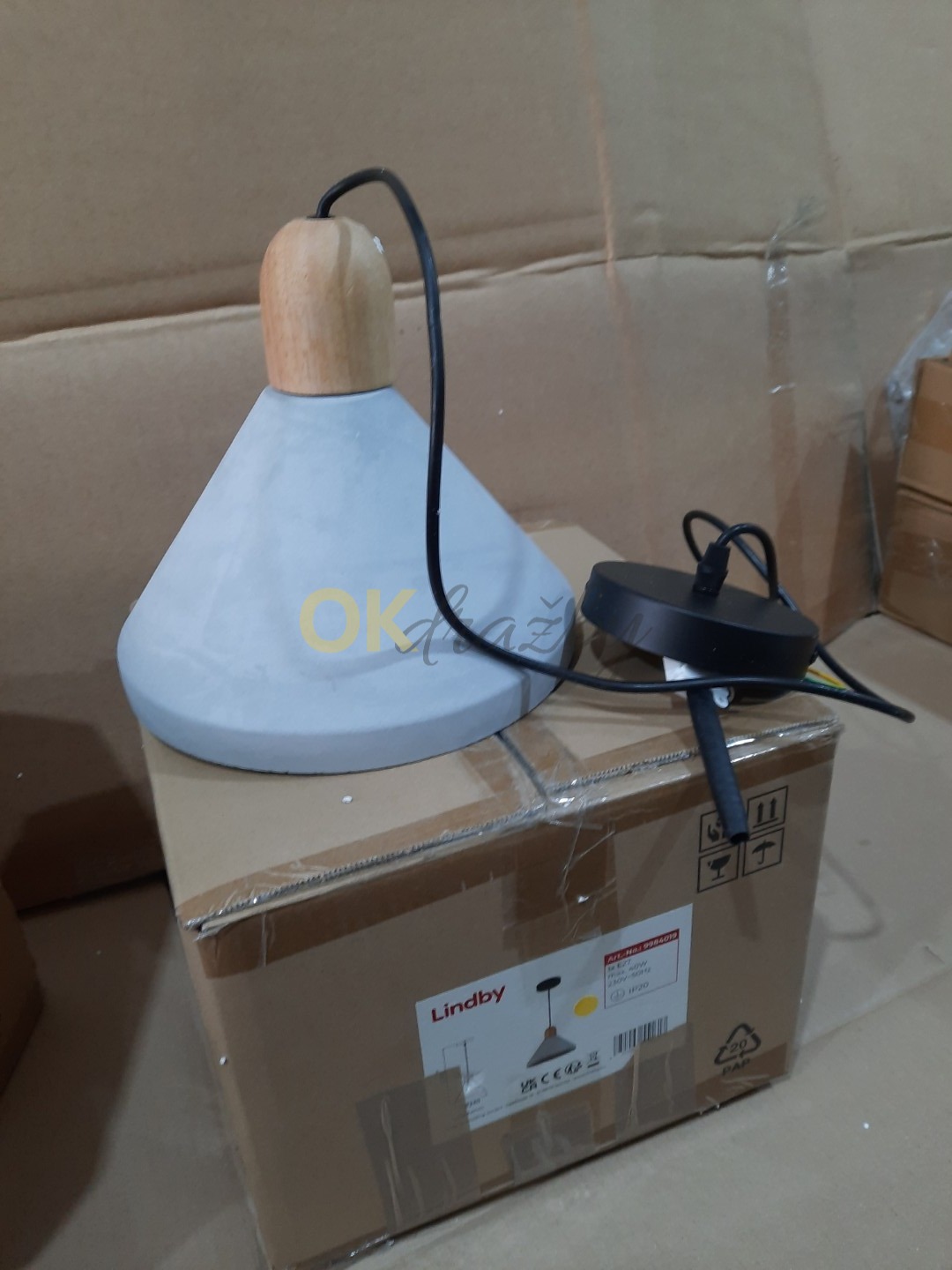 Lindby betonové závěsné světlo Caisy se dřevem, kulaté