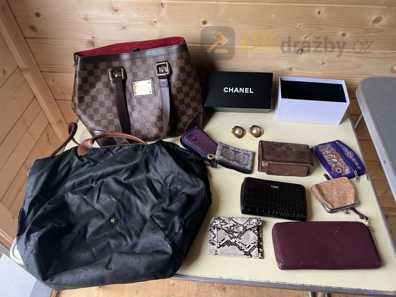 Náušnice Chanel, kabelka Longchamp + kabelka a peněženky