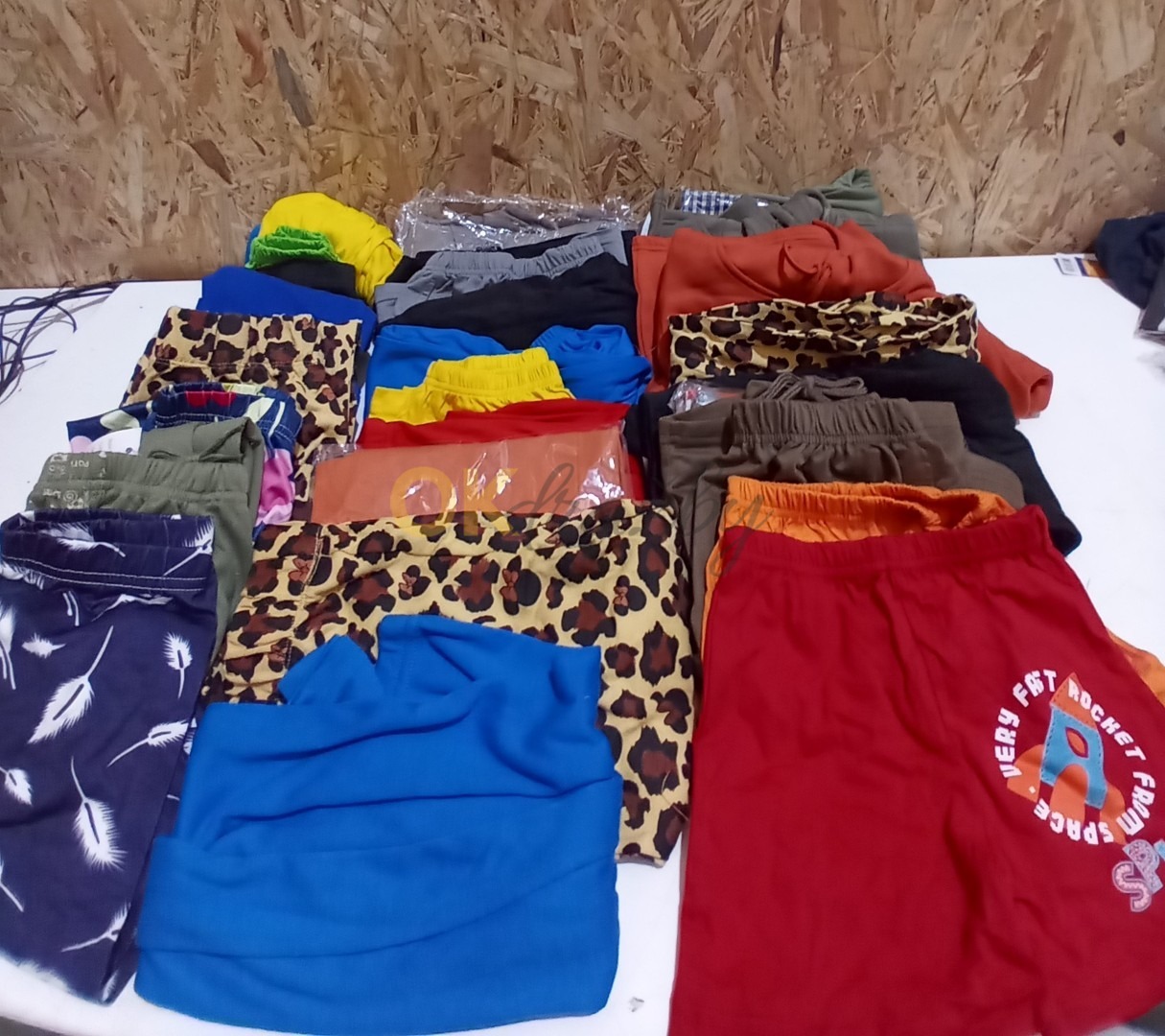 Mix dětského oblečení – kraťasy, kalhoty, mikiny, viz foto – celkem 70 kusů