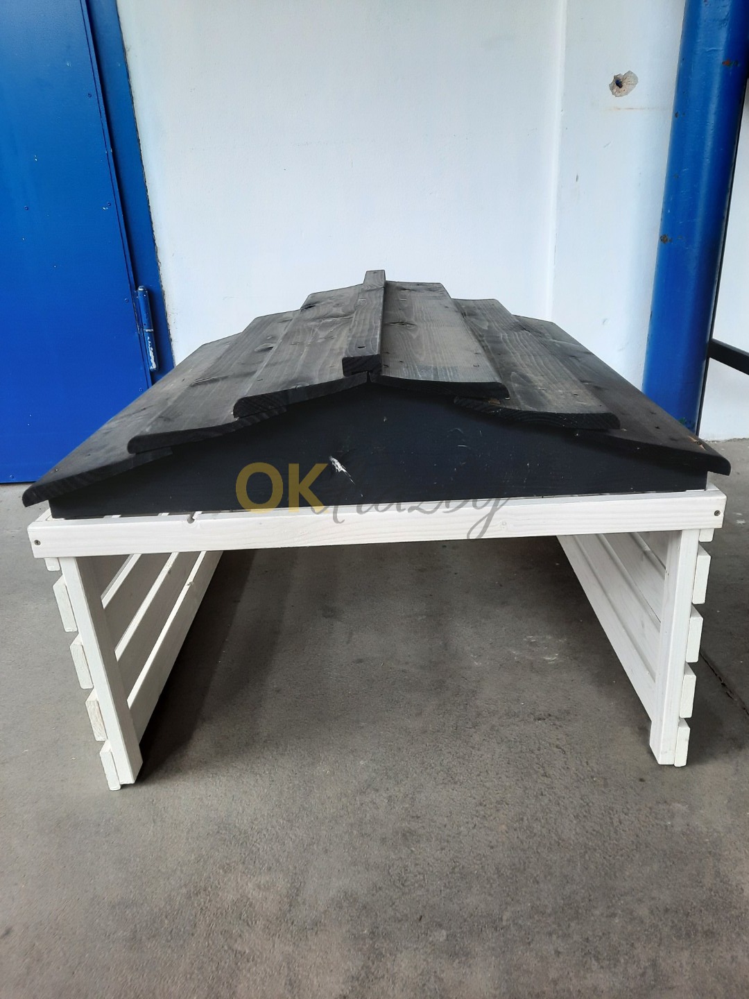 Garáž na robotickou sekačku černobílá 78x74x54 jedlové dřevo