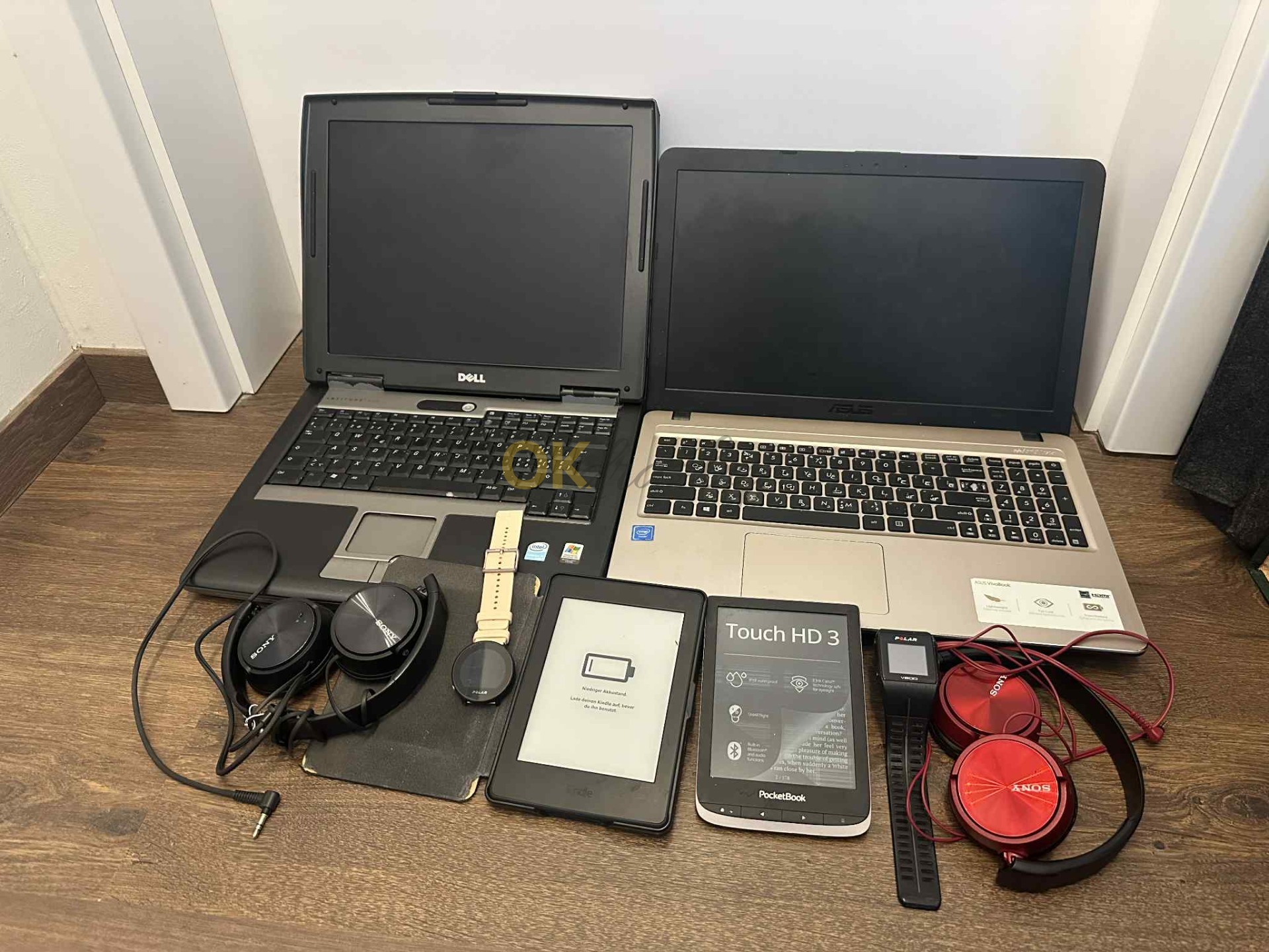 2x Notebook, 2x, sluchátka, 2x čtečka knih, 2x chytré hodinky