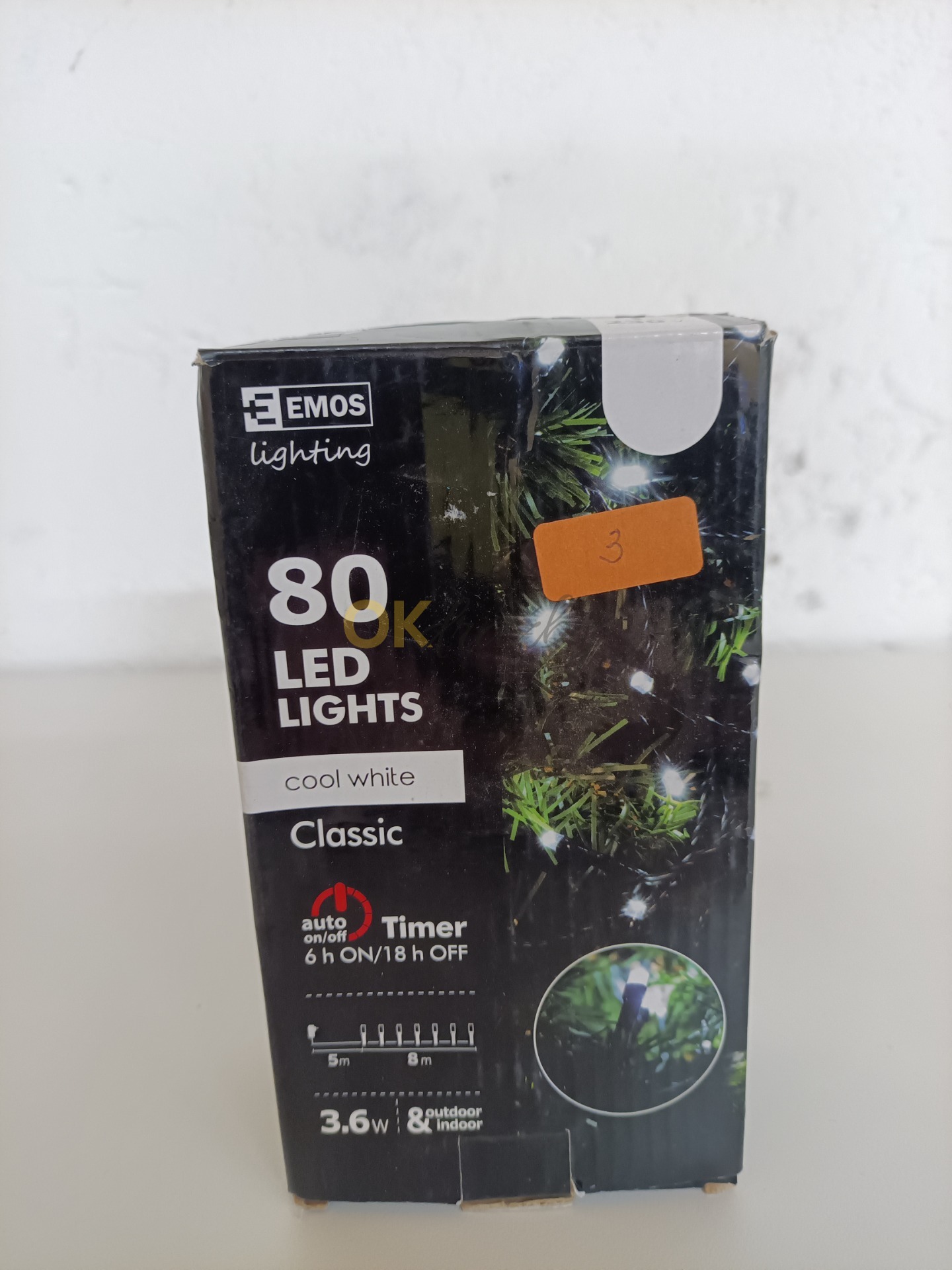 LED vánoční řetěz Emos , 8m, studená bílá, časovač