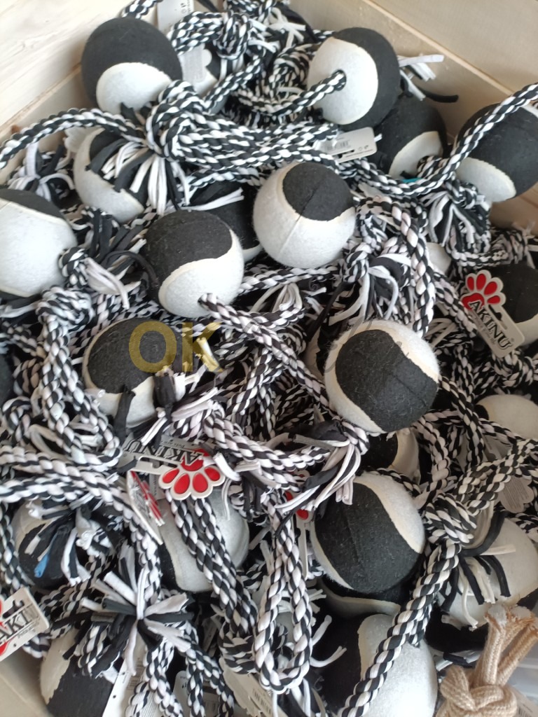 Kombinace vysoce odolného bavlněného lana a klasického tenisového míčku vydrží i pořádný stisk.