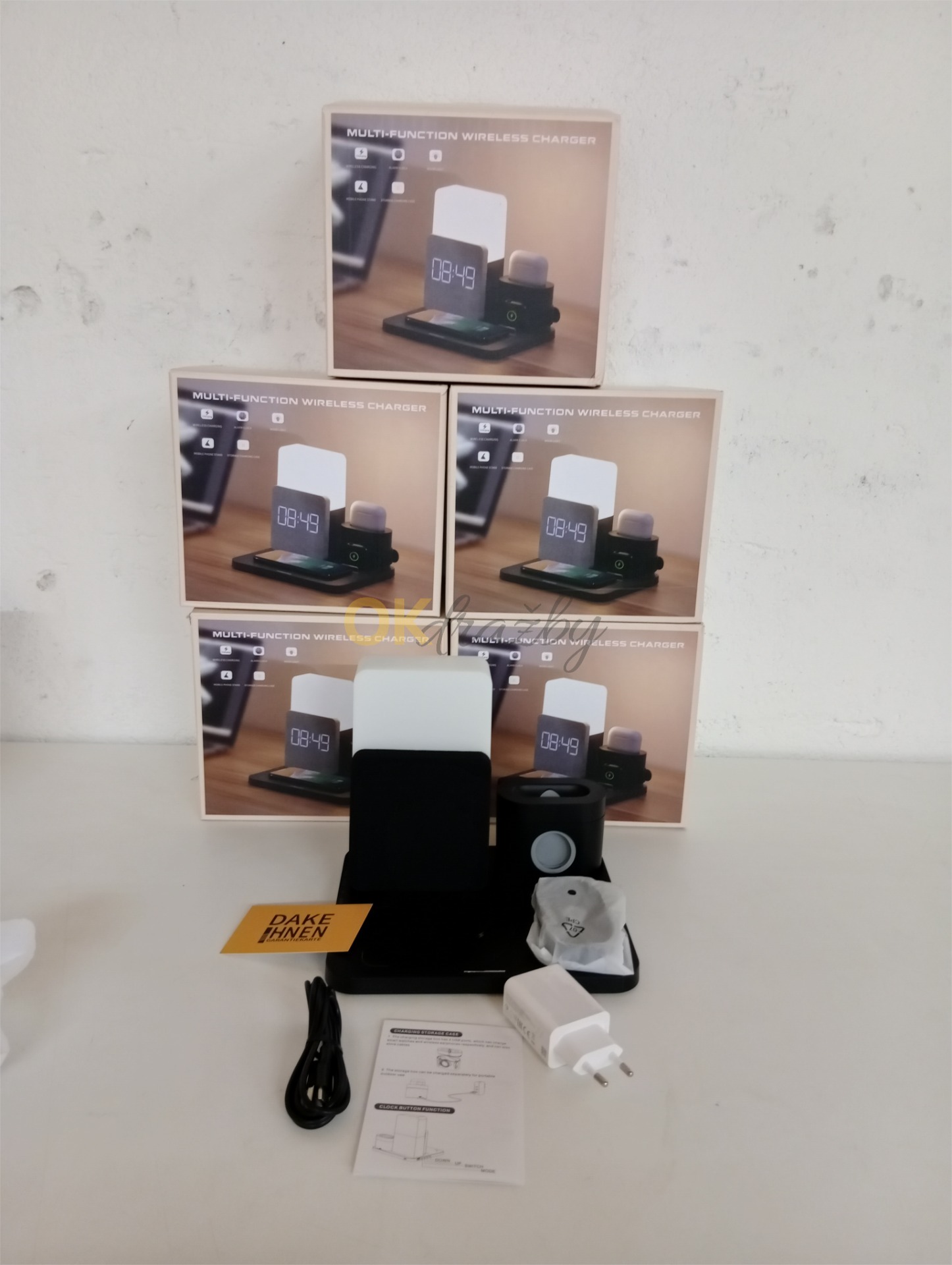 Multifunkční bezdrátová nabíječka ANOLE 3v1 s digitálním budíkem, vhodné pro Apple Watch, chytré hodinky, AirPods, iPhone, Samsung, černá barva - 5 kusů