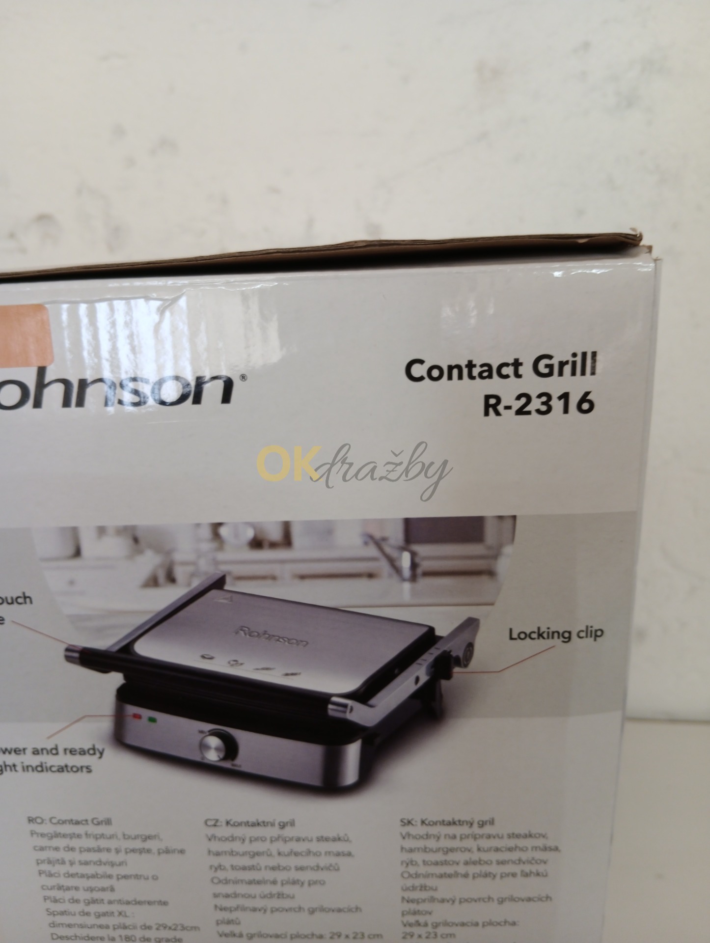 Zboží bylo vystaveno na prodejně, výstavě apod. jako vzorový vystavený kus, většinou na regálu. Zboží může nést drobné škrábance, či oděrky, které však nemají vliv na funkčnost zboží. Gril má ulomený zadní levý kloub, nemá vliv na funkci. Vše co je součástí dražby viz. foto.