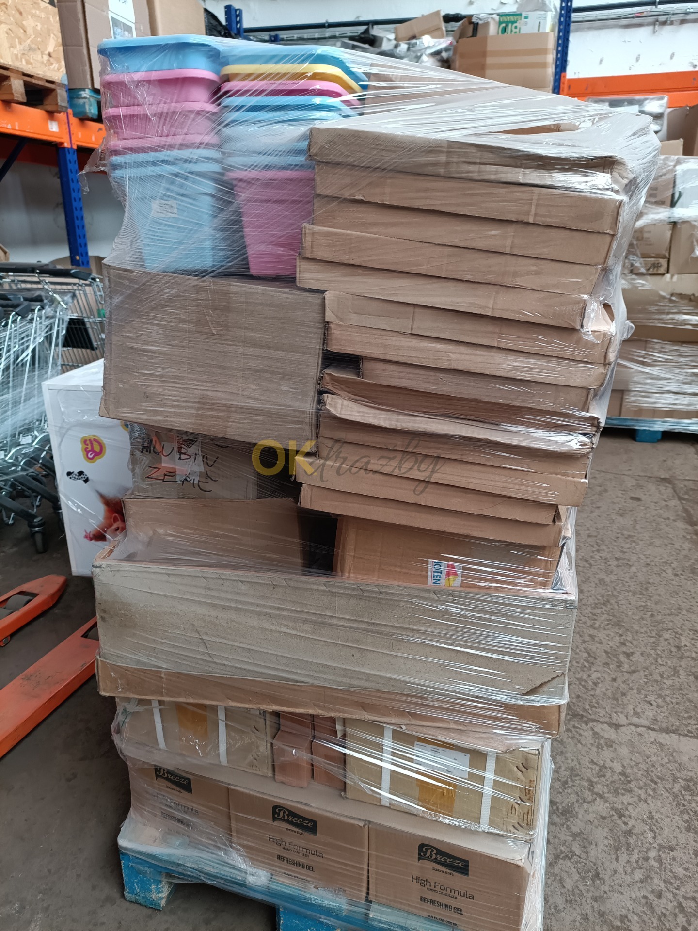 Jedná se o zboží ze zahraničních i českých obchodních řetězců a eshopů. Jedná se o drobné spotřební zboží vhodné k dalšímu překupu na burzách a pod. Paleta neobsahuje elektroniku, skládá se většinou z drobných malých věcí, jako jsou dekorační předměty, drogerie, hračky atd. Neznámý obsah palet bez kontroly a záruky.