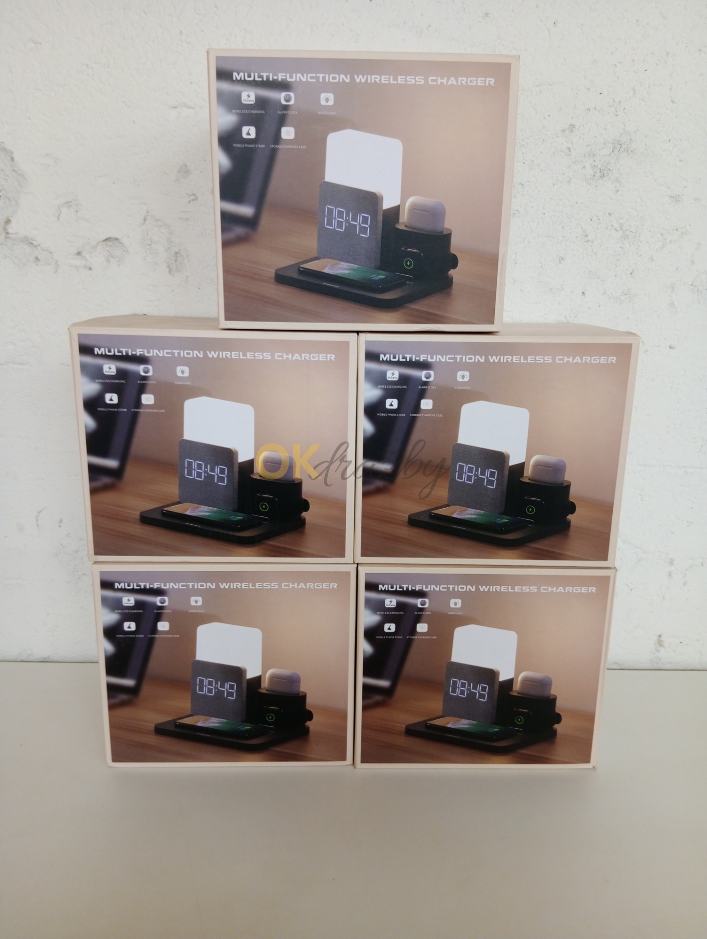 Multifunkční bezdrátová nabíječka ANOLE 3v1 s digitálním budíkem, vhodné pro Apple Watch, chytré hodinky, AirPods, iPhone, Samsung, černá barva - 5 kusů