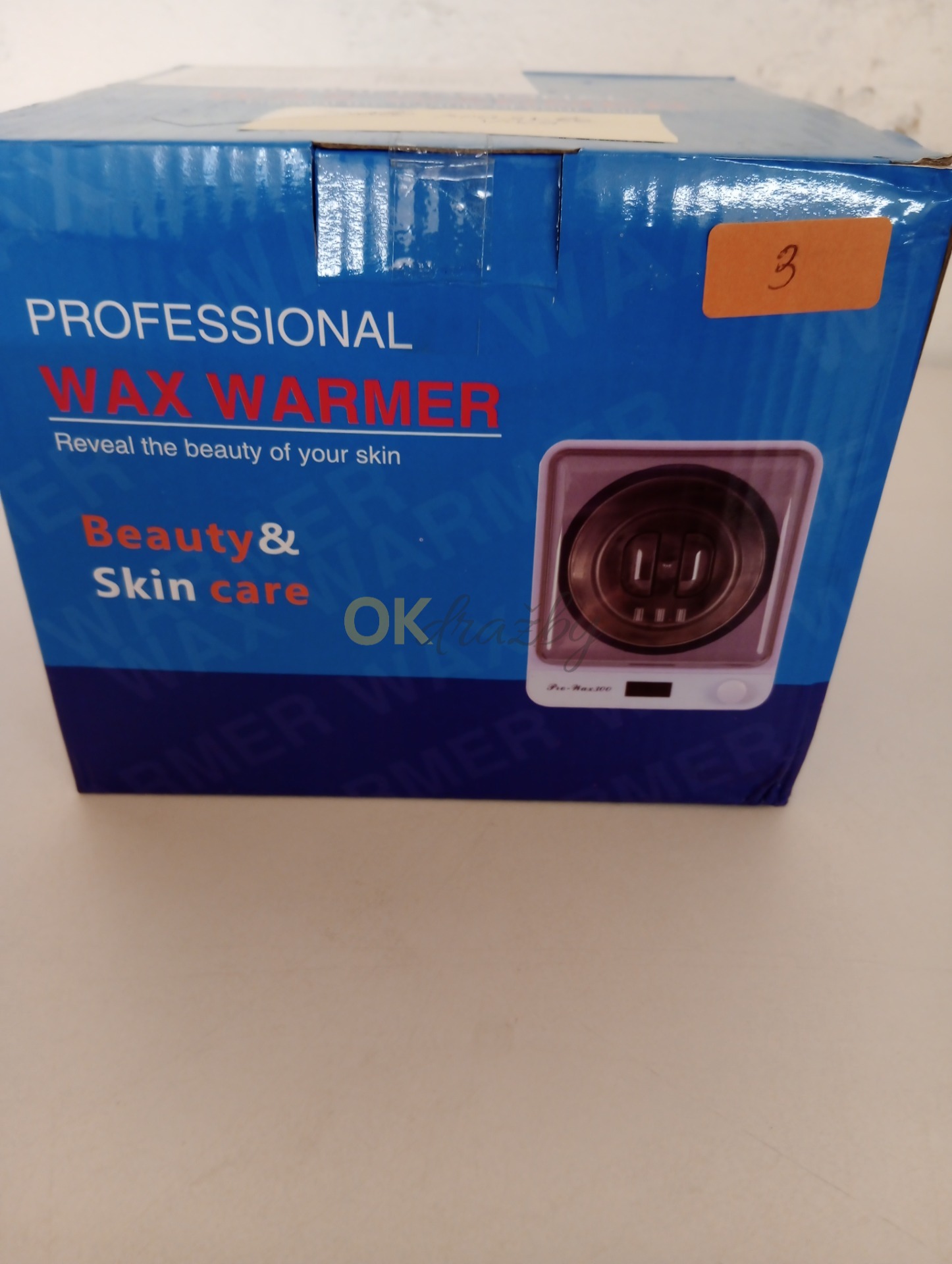Sada na depilaci Tophoniex (ohřívač + 4x vosk), průhledné plastové víko má prasklinu (viz foto).