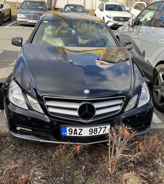Automobil, Tovární značka: MERCEDES-BENZ Tovární typ: MERCEDES-BENZ E 220 CDI 207 Obchodní označení: E 220 CDI Rok výroby: 2011 1. registrace: 31.05.2011. Registrační značka: 9AZ9877 VIN: WDD2073021F065526 Status: provozované (evidenční údaj). Barva: ČERNÁ-METAL. Majitel: BUKEFAL s.r.o. (IČO: 27656870). Vozidlo je po havárii odstavené od roku 2021. Má poškozenou: přední kapotu, pravou část karoserie, přední nárazník, vnější zpětná zrcátka. Rovněž defekt levé zadní pneumatiky.