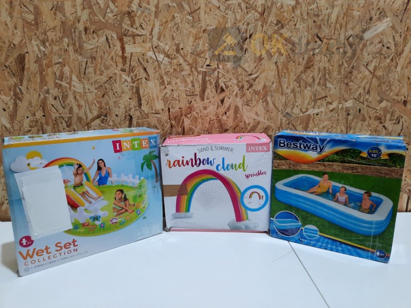 3 kusy - BESTWAY 54009 Nafukovací bazén 305 x 183 x 56 cm - Intex 57154 Hrací centrum My Garden 290 x 180 x 104 cm - Intex Rozprašovač duha vícebarevný 300 x 109 x 180 cm |