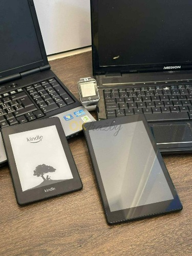 Soubor notebooky, sluchátka, chytré hodinky, čtečky knih