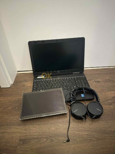 Notebook Dell Latitude E5540, tablet Samsung, sluchátka Sony