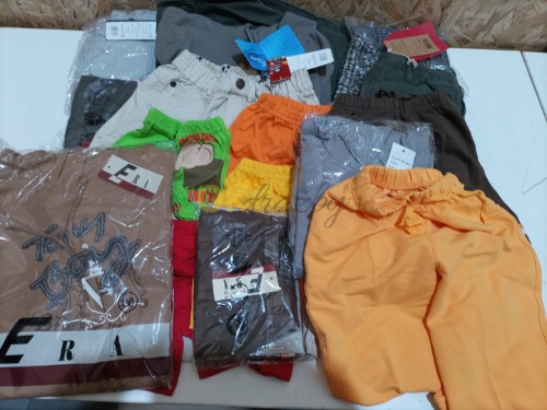 Mix dětského oblečení – kraťasy, kalhoty, mikiny, viz foto – celkem 70 kusů